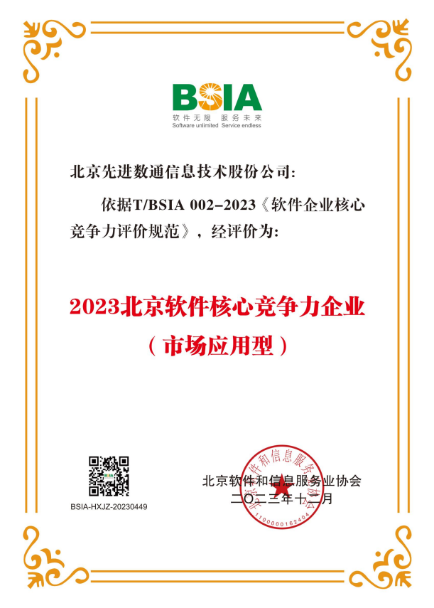 Ebpay荣获“2023北京软件核心竞争力企业”荣誉